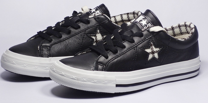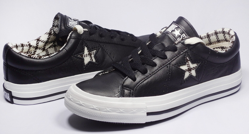 匡威one star黑/巧克力色/奶白色低幫綁帶牛皮中性鞋