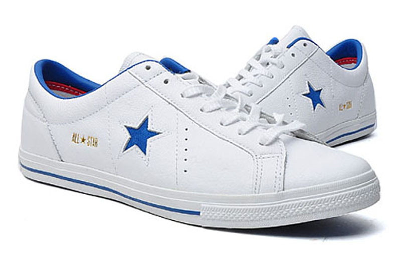 匡威One Star白/藍低幫綁帶牛皮中性鞋