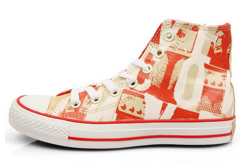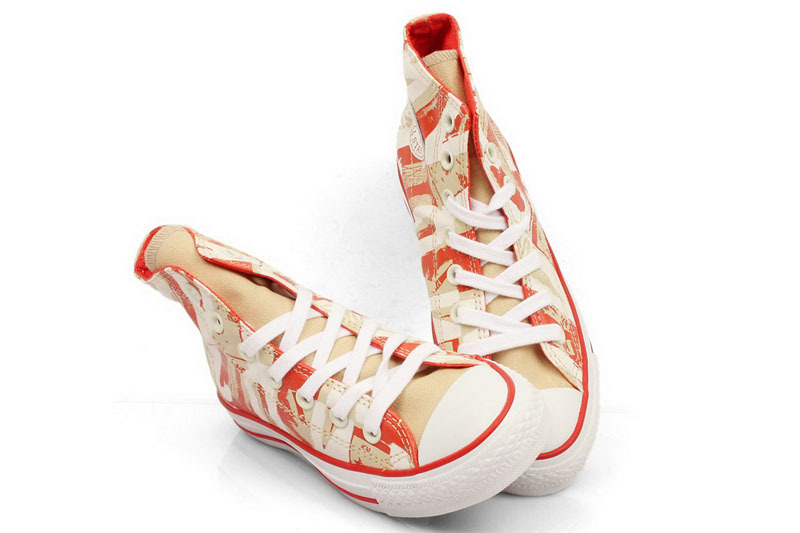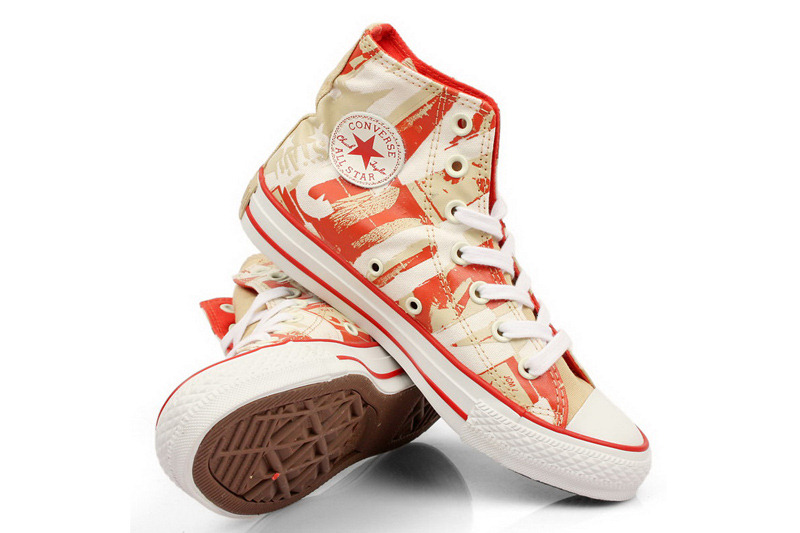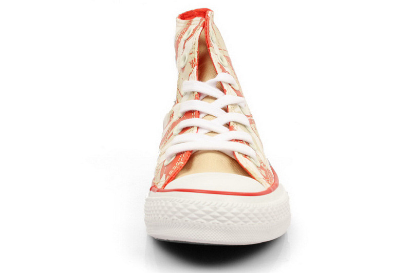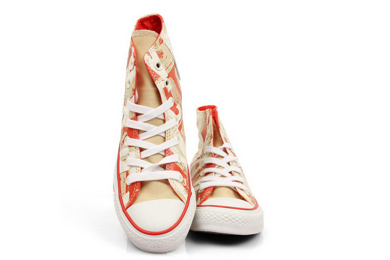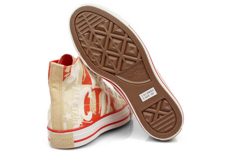 匡威All Star深米黃色/紅高幫綁帶帆布中性鞋