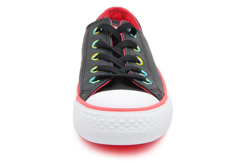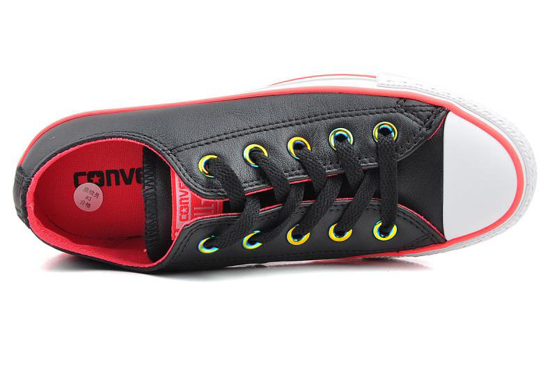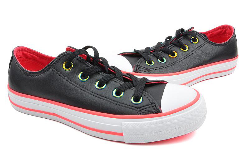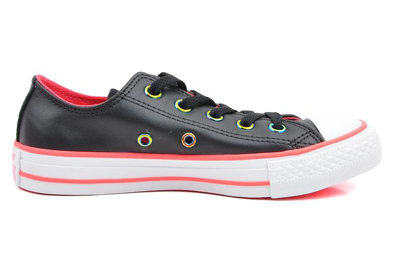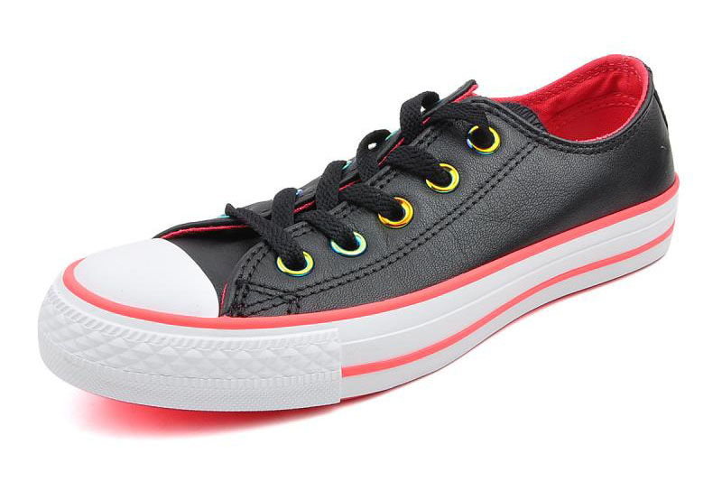 匡威143127-純色皮革,搭配熒光色的鞋邊,logo和內里,簡潔又時尚