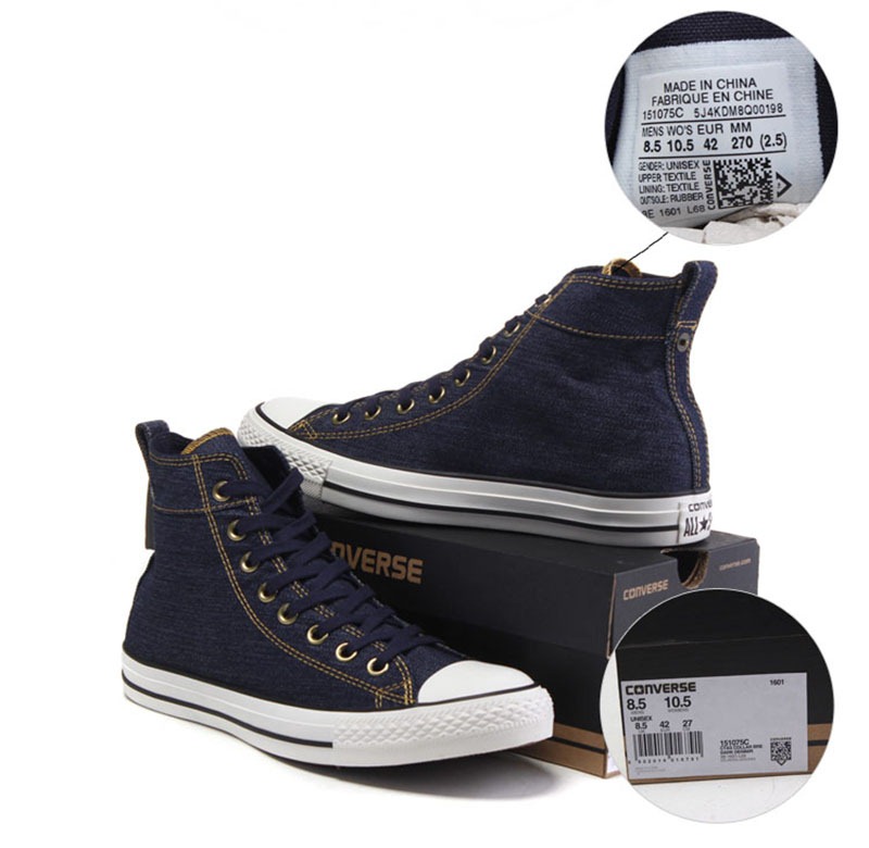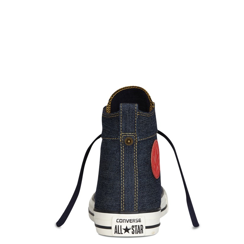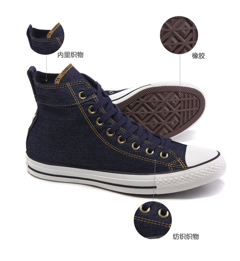 匡威Chuck Taylor深牛仔藍色/紅色/黑色高幫綁帶帆布中性鞋