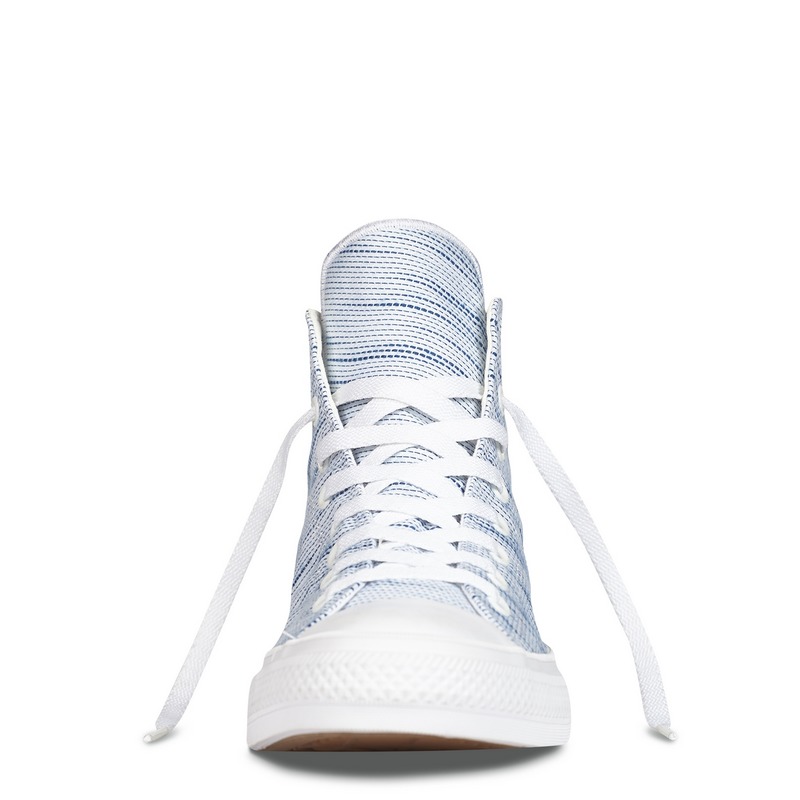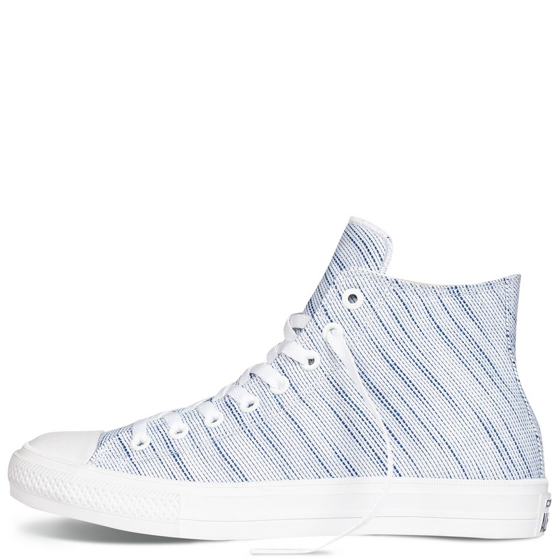 匡威151085-鞋面選用竹節針織面料,超軟沖穿孔仿麂皮襯里, Lunarlon 鞋墊,360度鞋舌縫線包邊, 采用松緊帶防滑鞋舌設計。本季全新的CHUCK TAYLOR ALL STAR II,鞋面選用竹節針織面料,鞋舌上搭配松緊帶設計,以及360度縫線包邊,能很好地保護腳踝,選用Lunarlon 鞋墊設計,配以沖穿孔仿麂皮襯里,穿著舒適柔軟,造型經典。高幫,紡織織物,淺藍色