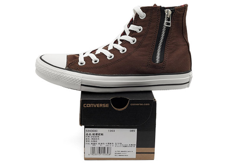 匡威534300-2013年新款534300以機車夾克為概念,配以與眾不同的內里,拉鏈的設計不僅搖滾范十足,更是方便穿脫,獨特的拉鏈配色,更亮眼。高幫,帆布,深咖啡色
